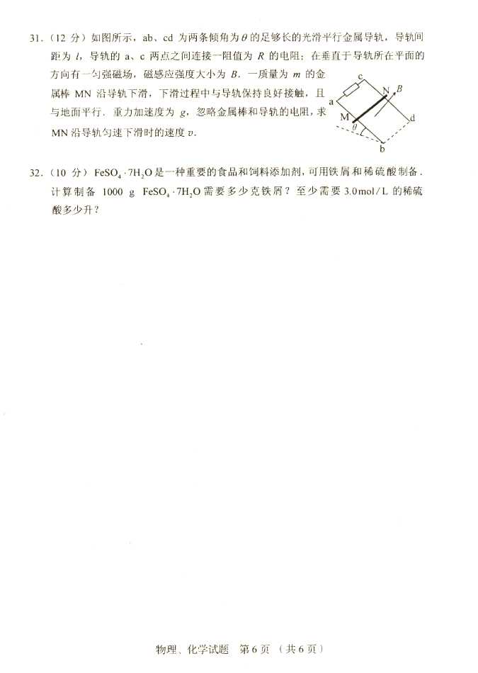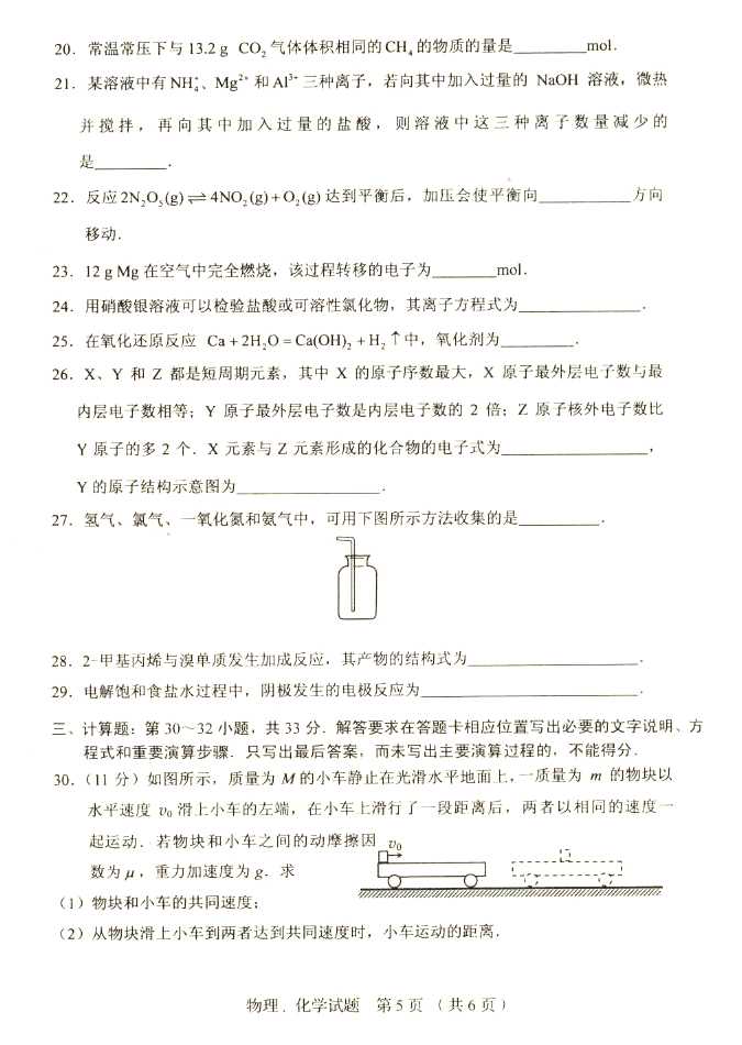 2011年全国成人高考高起点《物理化学》试题及答案